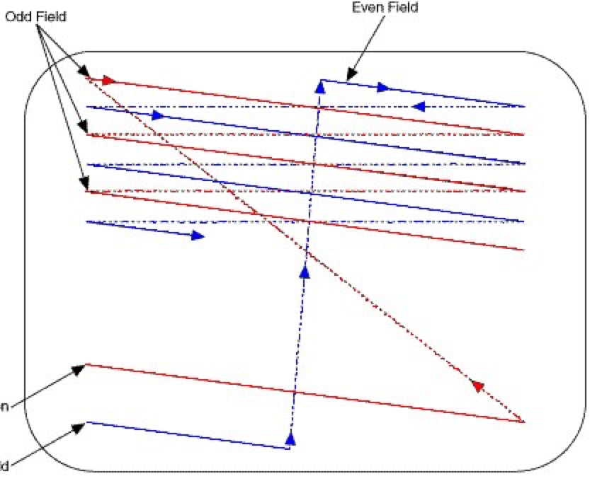 How interlace scanning works on a cathode ray tube display.